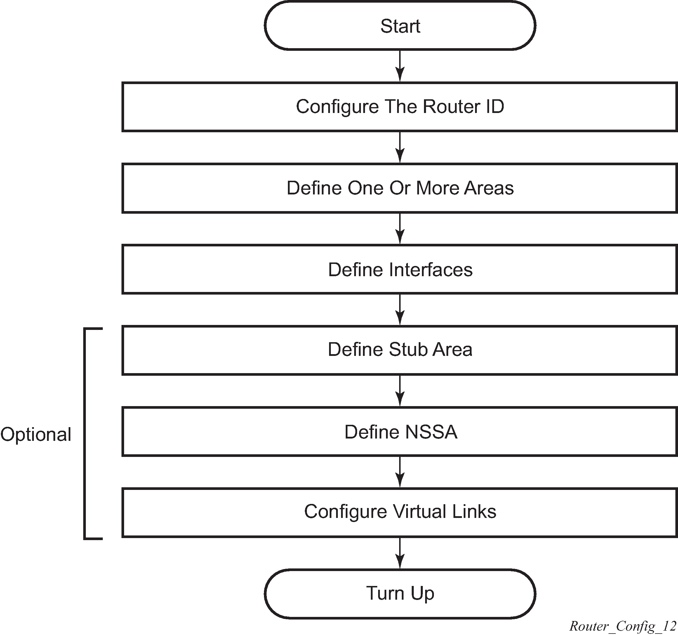 Figure: OSPF configuration and implementation flow displays the process to provision basic OSPF parameters.